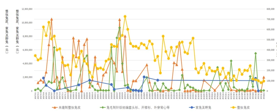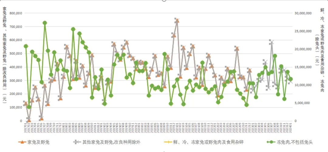 圖6 2017年1月-2024年1月其他兔產(chǎn)品出口額走勢