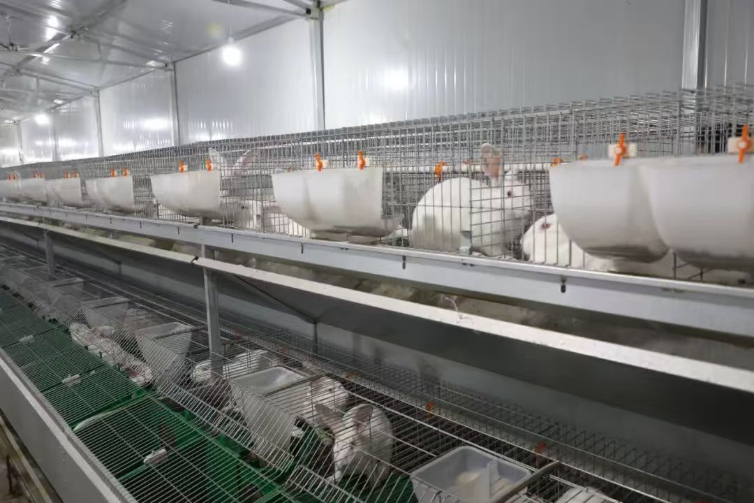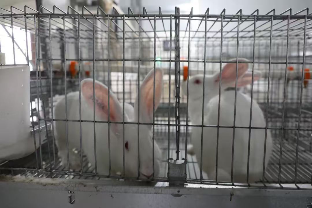 走進(jìn)養(yǎng)殖基地,一排排整齊的兔舍映入眼簾。籠內(nèi)一只只雪白的、毛茸茸的兔子圓滾可愛(ài),有的在悠閑地進(jìn)食,有的在瞇眼打盹,有的興奮地豎起耳朵四下張望,工作人員正熟練地加食、加水、清理糞便。
