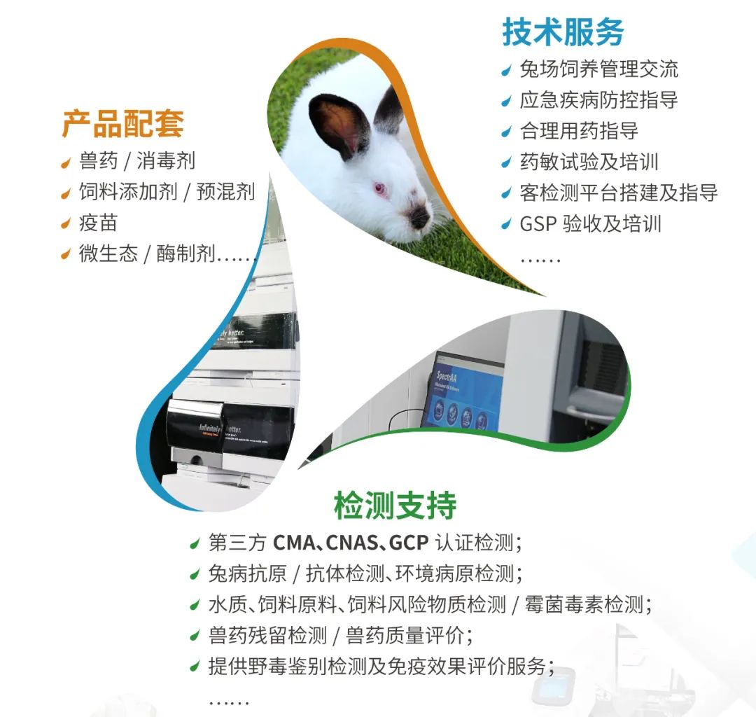 為更好的服務(wù)中國兔業(yè)發(fā)展,攜手兔業(yè)人共同應(yīng)對市場變革,解決市場需求,青島蔚藍(lán)生物、青島康地恩藥業(yè)開放集團旗下獸藥、疫苗、酶制劑、微生態(tài)全產(chǎn)業(yè)研發(fā)、檢測、生產(chǎn)、服務(wù)平臺,圍繞兔業(yè)健康養(yǎng)殖,為廣大同仁提供如下技術(shù)輸出: