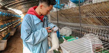 傍晚,山東省菏澤市鄆城縣樊樓村標(biāo)準(zhǔn)化兔舍內(nèi)傳來陣陣“沙沙”聲,村民李桂花正麻利地給肉食兔添加飼料。“以前撇家舍業(yè)的外出務(wù)工,一年掙不到兩萬塊,后來跟