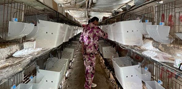 走進(jìn)山東省日照市莒縣夏莊鎮(zhèn)宏康養(yǎng)兔專業(yè)合作社,寬敞干凈的兔棚映入眼簾,兔籠內(nèi)雪白的兔子圓滾可愛、毛發(fā)光亮。合作社負(fù)責(zé)人盧兆亮正在給剛生產(chǎn)后哺乳的母兔們開小灶,喂食