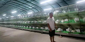 現(xiàn)在,走進山東省臨沂市莒南縣澇坡鎮(zhèn)東高柱村臥石嶺伊拉肉兔養(yǎng)殖專業(yè)合作社,映入眼簾的是一千一百平方米的規(guī)模養(yǎng)殖大棚,一排排兔籠整齊劃一、干凈整潔,一只只雪白體壯的兔子