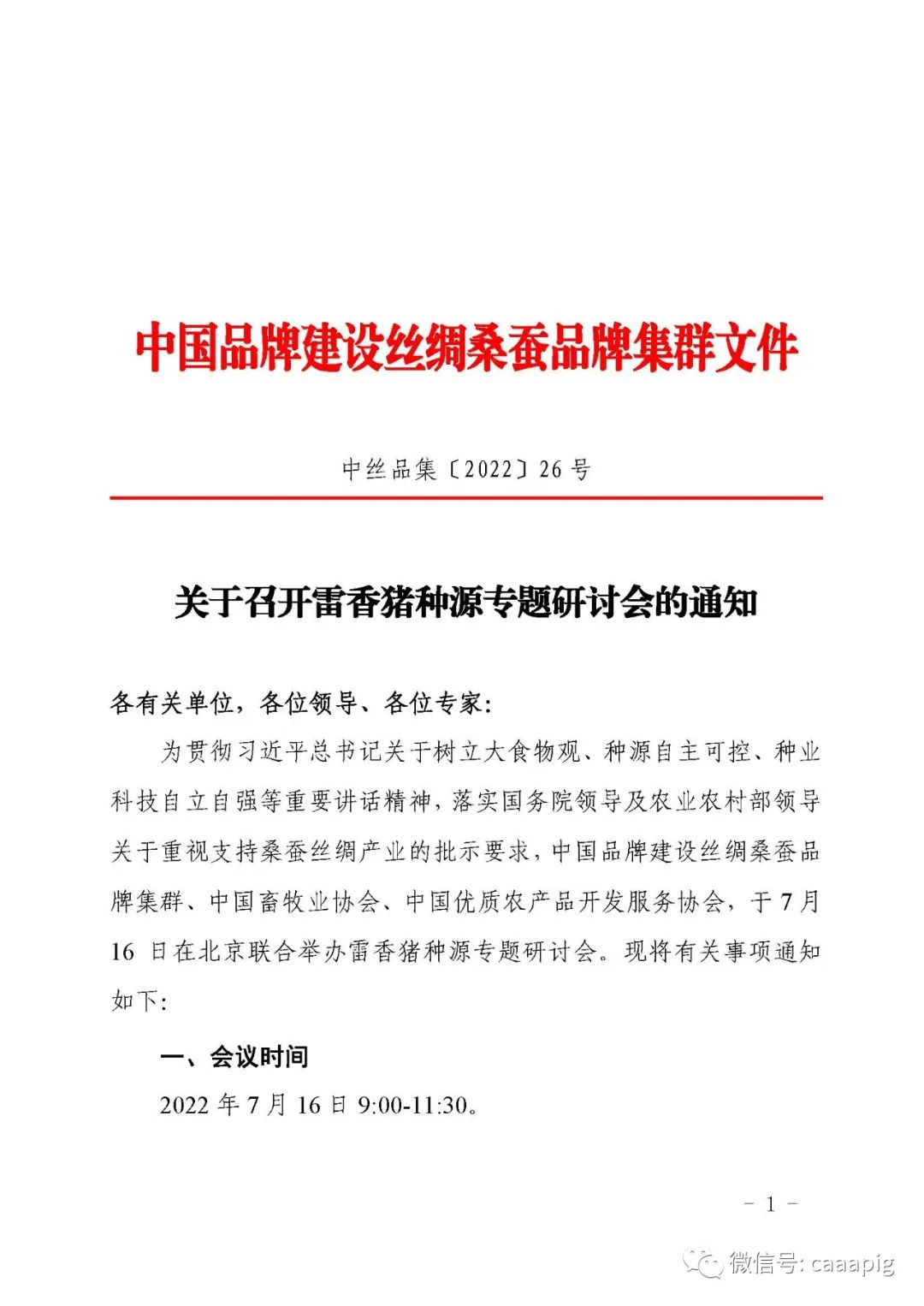 關(guān)于召開(kāi)雷香豬種源專(zhuān)題研討會(huì)的通知