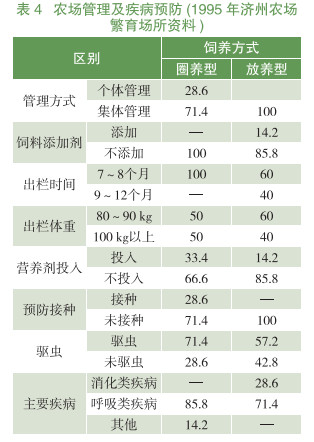 根據(jù)韓國(guó)養(yǎng)豬產(chǎn)業(yè)的觀點(diǎn),母豬在產(chǎn)仔時(shí)空間需要足夠大,分娩的相關(guān)設(shè)施需要齊全,這樣才能提高母豬產(chǎn)仔數(shù)和幼仔成活率間。傳統(tǒng)濟(jì)州黑豬的繁育成長(zhǎng)期:仔豬期60d以下,成長(zhǎng)期60-114d,育肥期115-210d,種豬360d以上。發(fā)情周期為21 d,懷孕期為(113土1.6)d,人工繁育率為88%,一般產(chǎn)仔數(shù)量為7 -8頭,仔豬重量為500-900g,成熟豬體重為70-80 kg。在仔豬期和育肥豬的飼養(yǎng)過程中,添加安全性好的酵母菌(Saccharomycescerevisiae),可以提高生長(zhǎng)速度和營(yíng)養(yǎng)吸收能力。濟(jì)州黑豬是紅色肉類的代表家畜,其里脊內(nèi)肌內(nèi)脂肪含量平均數(shù)值為6.09,達(dá)到豬肉肉質(zhì)等級(jí)判定標(biāo)準(zhǔn)中的最高等級(jí),濟(jì)州黑豬通過品種改良和合理育肥,其胴體出肉率、胴體瘦肉率都達(dá)到最佳。