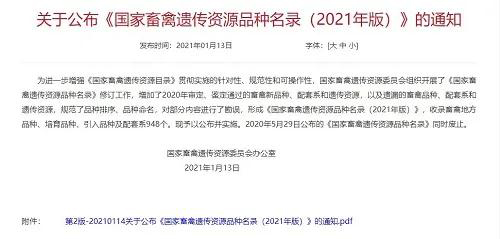 最新《國家畜禽遺傳資源品種名錄(2021年版)》公布