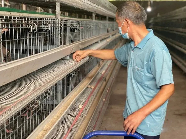 在楊安輝的帶領(lǐng)下,記者走進(jìn)了村委大樓旁的溫室大棚,里面正飼養(yǎng)著1萬羽鷓鴣。800平方米的大棚里兩面透風(fēng),干凈整潔。養(yǎng)殖籠為四層的立體種鴣舍,配置有自動(dòng)飲水設(shè)備、清糞卷帶、電動(dòng)清糞機(jī)等。這個(gè)大棚里養(yǎng)殖的都是成年鷓鴣,它們作為“種鴣”,不斷地產(chǎn)蛋,為村里創(chuàng)造效益。據(jù)悉,每天這個(gè)大棚都能收獲3500枚左右的鷓鴣蛋。