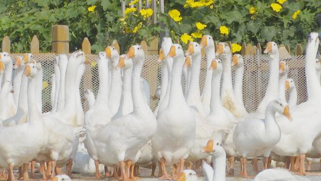 近日,記者走進河南省駐馬店市上蔡縣黃埠鎮(zhèn)常莊村弘羽養(yǎng)殖專業(yè)合作社,看到幾千只鵝成群結(jié)隊,或嬉戲、或覓食、或漫步。華錄集團駐上蔡縣常莊村第一書記郭全威、村黨支部書記呂志發(fā)與工人們一起給鵝準(zhǔn)備飼料,放眼望去,成群的鵝追逐覓食,呈現(xiàn)出一片生機盎然的活力景象。