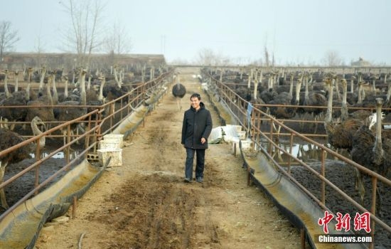劉福辰在鴕鳥養(yǎng)殖場(chǎng)