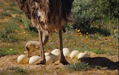 (2)種鳥的管理。挑選種鳥時,應選擇精神飽滿、反應迅速、體型高大、發(fā)育較好的鳥。在人工飼養(yǎng)條件下,公母配比以 1∶2 或 1∶3 較為適宜,注意加強鴕鳥的運動,能夠獲得較高的受精率。鴕鳥的交配,多在清晨或傍晚進行。雄性強的雄鳥可在 1天交配 6~10 次,母鳥在交配后 1 周左右便開始產蛋。鴕鳥有抱巢性,故在人工飼養(yǎng)條件下,應及時把蛋取走。取蛋時不能直接用手取,為防止污染,應用干凈的紙或干凈毛巾取蛋,并注意防止公鳥的攻擊。母鳥開產第 1 年產蛋約 20 枚,隨后產蛋量逐年增加。正常情況下,一只優(yōu)良的母鳥年產蛋量可達 80 枚以上 。