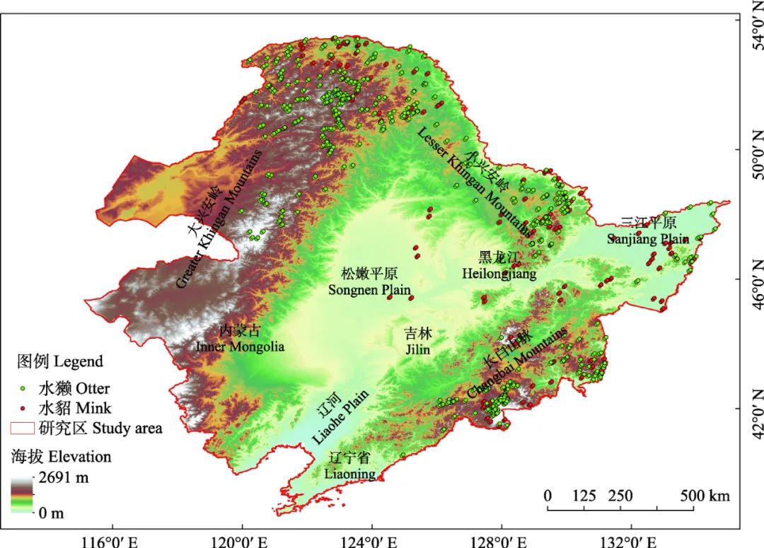 入侵物種北美水貂在我國(guó)東北地區(qū)與歐亞水獺的分布和生態(tài)位高度重疊